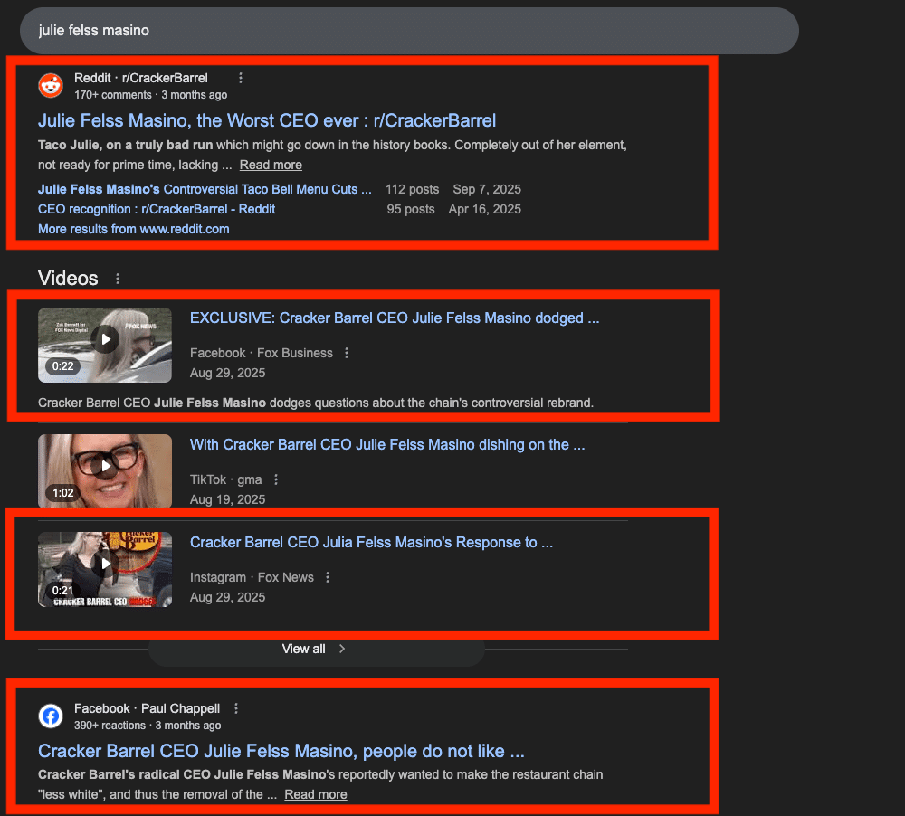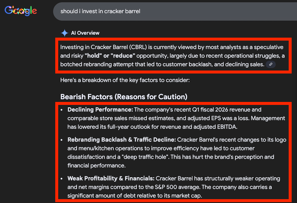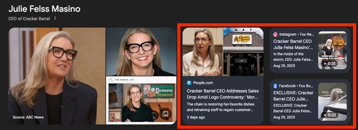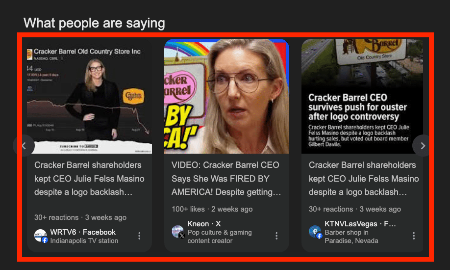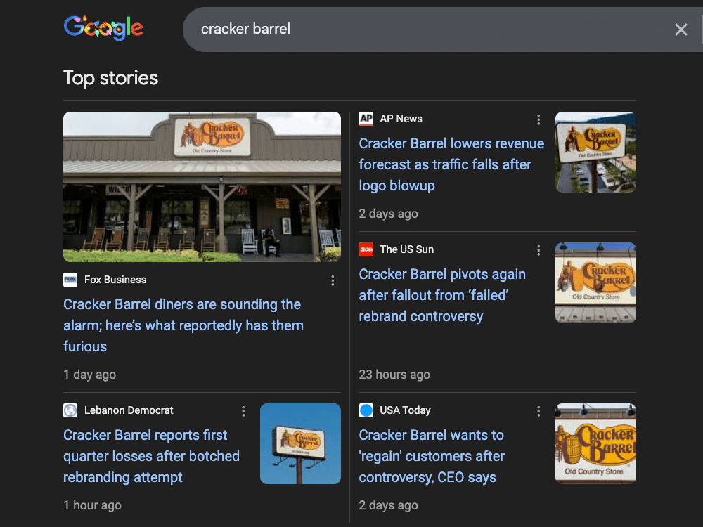 Adding insult to injury, Cracker Barrel is now being cited in “biggest brand fails” roundup articles by major publications like Forbes, Ad Age, and Adweek alongside brands like American Eagle and The Campbell’s Company.