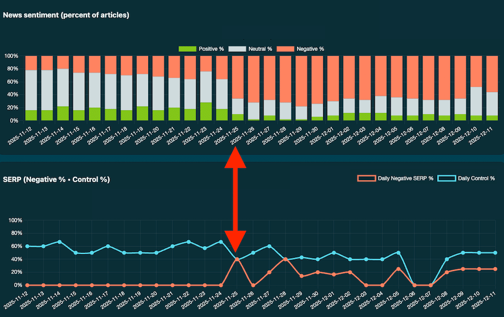 While this is a good start, it hasn’t improved the brand’s broader search landscape. Its page-one organic listings remain 25% negative, and multiple product queries are inundated with unfavorable articles, videos, and discussions.